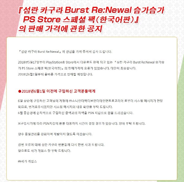 세가코리아 문제인지 세가 본사 문제인지 하여간 세가놈들 한국에서 일 대충하는건 전부터 말 많았죠 | 18.06.03 20:42 | |