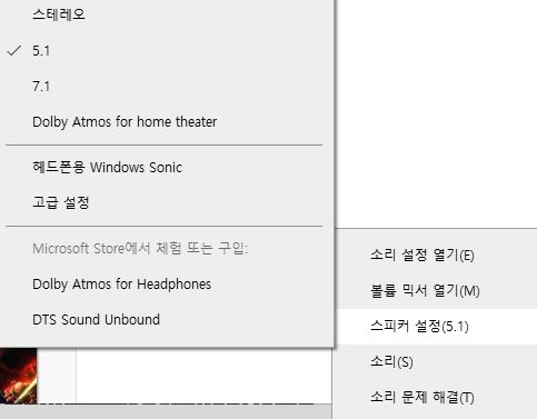 pc에서 설정하라는거 같아요. 게임에서는 스테레오라고 되어있는데 요렇게 설정하면 5.1 채널 되는거 같아요.
