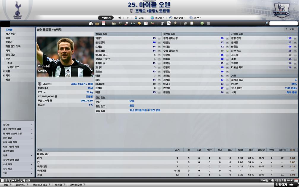 기성용 왜케 ㅎㄷㄷ 하지 ㅇ_ㅇ; 내 기성용은 코치가 빨리 방출하라고 하던데 -_-; 오웬 쓸만합니다. 저 뉴캐슬하는데 가장 골 많이 넣었어요. 비록 FA로 한푼도 못받고 인테르에 팔았지만 ㅠ_ㅠ 제 FM에서는 맨시에서 함식이랑 아르샤빈 밴치후보....-_-; 벤틀리도 ㅎㄷㄷ하더군요. 곧 영입예정 ㅎ