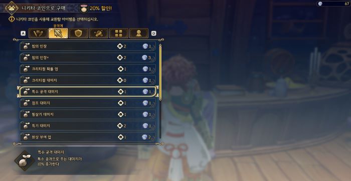 엔딩이후 10장 추가보스 잡는 시점입니다. 저도 특수공격+ 와 특기+가 없네요. 본거 같은데요. 박스 열어서 먹은 특수공격+ 가 가방에 있는 것으로 보아 어제 패치하더니 니키타 상점에서 빠졌나보네요.