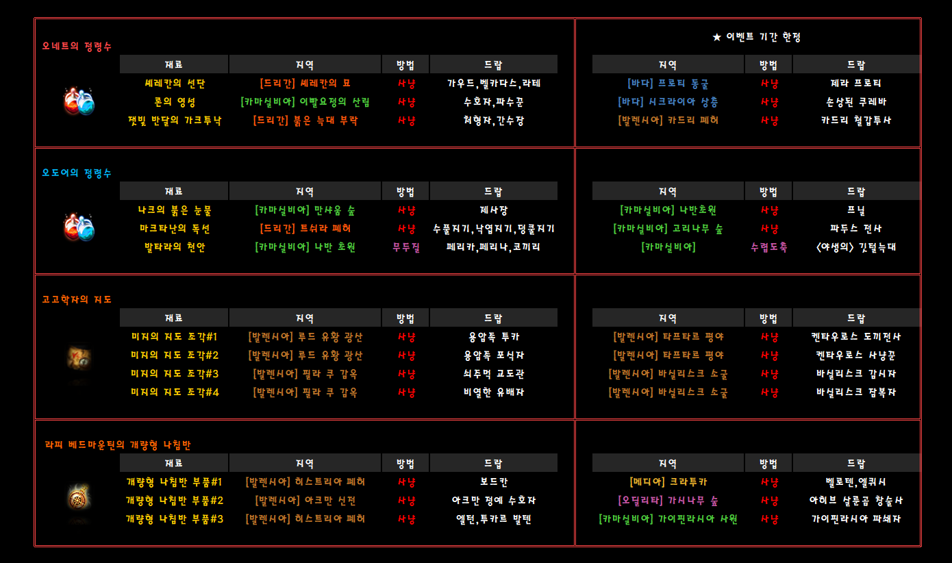 하위재료는 모든 몹이 다주고, 완제는 특정 몹만 줍니다