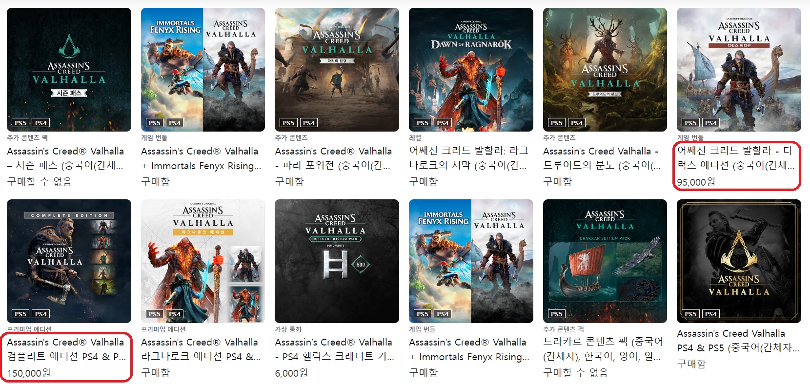 뭔가 이상하시네요. 저는 낱개로 발할라의 모든 컨텐츠를 구매하여 가지고 있지만, 컴플리트 에디션과 디럭스 에디션은 구매할 수 있는 조건으로 나옵니다. 이모탈은 팩케이지를 구매한 적 없고, 따로 구매했는데, 구매한거로 처리되어 있고요. 결론 : 이미 컴플리트 에디션 플레이 조건이 만족되어 있을 가능성이 있습니다.