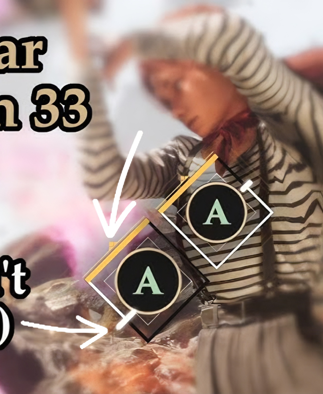아래 화살표에 위치한 흰색바가 시계방향으로 빠르게 도는데 그때 위 화살표 아래 조그만 삼각형 부분에 위치할때 버튼 누르면 완벽 입니다.
