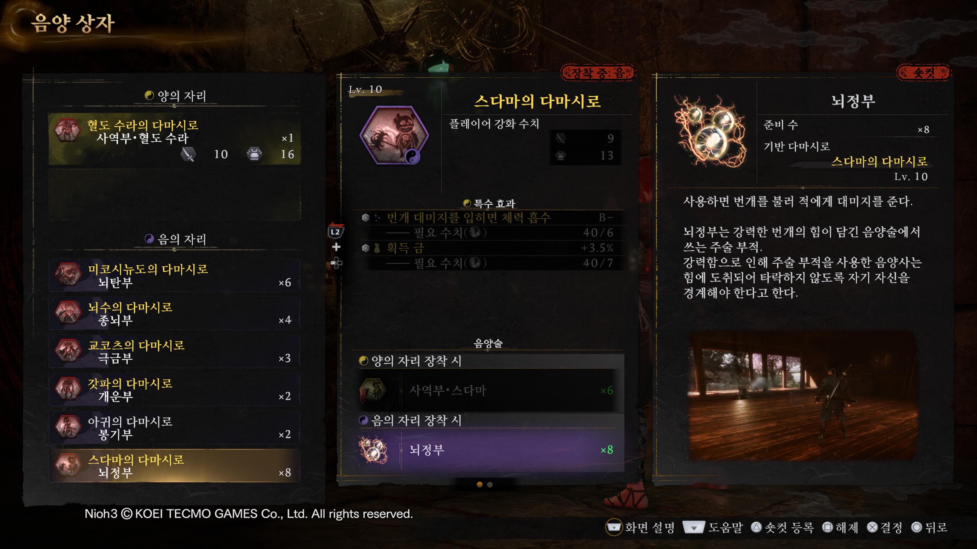 종뇌부 종수부 같이 속성구슬이 몸 주변을 빙빙 도는 걸 보통 하나정도 쓰고 싸웁니다 나머진 강력부 (버프) 라던가 봉기부 (디버프) 같은걸 쓰구요 요괴는 예전엔 잇폰같은 애가 추천이었는데 ... 이건 데모판에선 아직 그럴싸한 애가 없군요. | 26.02.05 13:57 | | |