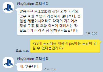 고객센터 공식 답변입니다. 일반 PS5에 호환되는 SSD가 pro에서도 호환된다는 보증을 할 수 없다네요. 참고로 제가 사용하는 SSD는 씨게이트의 FireCuda 530 입니다. | 24.11.11 15:56 | |