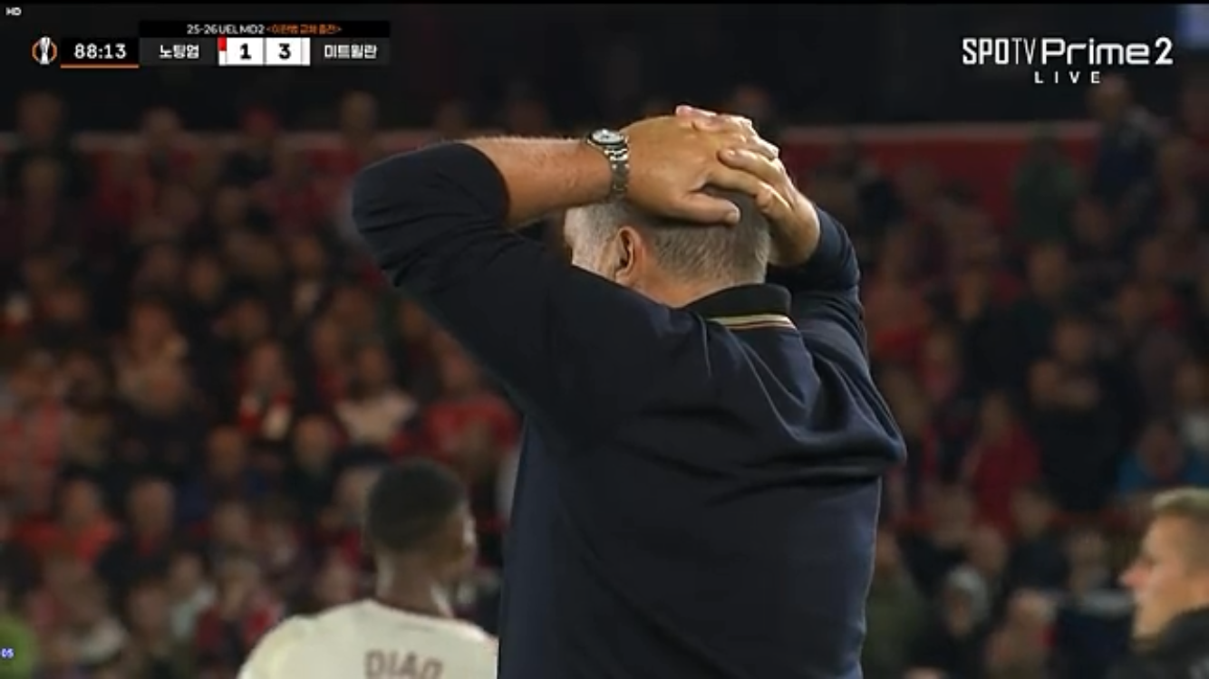 세트피스 2방 역습 1방에 노팅엄 침몰ㄷㄷ 부임후 7경기 패패무무패패 중인 포스텍ㅋㅋㅋㅋㅋ 저 장면 하나만으로 노팅엄 경기는 볼 가치가 있음