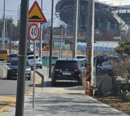 도로인줄 알았더니 인도에 아예 올려놨네???????? 아 정말 이런 인간들한테는 차량 압수하자