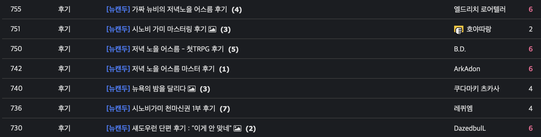 추천 6개로 동률인 후기글이 4개나 되는군요;;