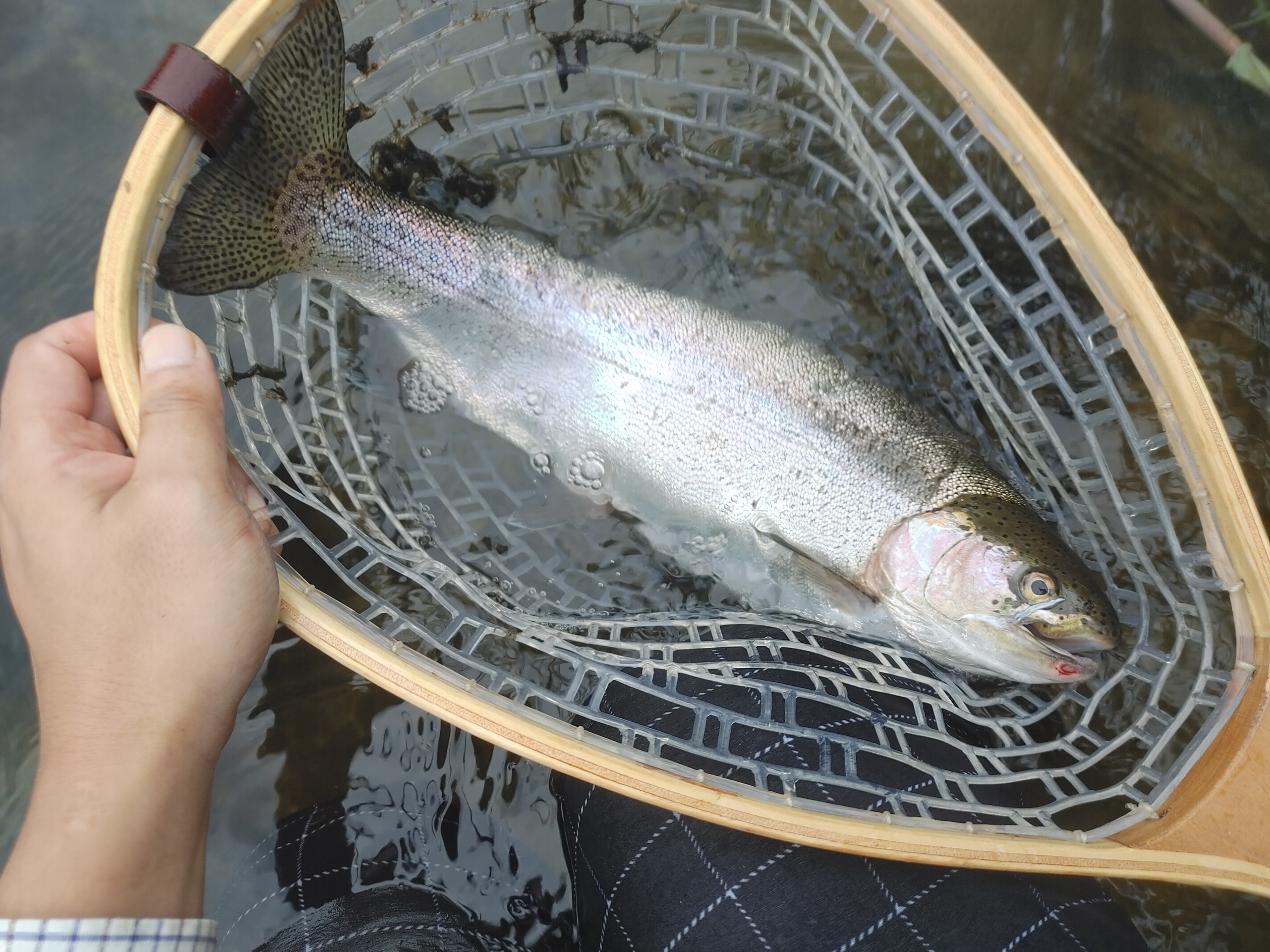 지난 주말에강원도 지류 내천에서 무지개송어 양식장 주변에 서식하는 놈들인데 떠내려가는 급류와 녀석들의 유영능력때문에 랜딩하는데 도하하고 같이 떠나려가서 랜딩 했었습니다.
