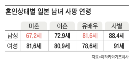 건강 관리가 제일 중요합니다.. 특히 남자들은 밤 늦게까지 대충 아무거나 먹으면서 술까지 마시기 때문에 유의미한 수준으로 평균 수명이 짧아요