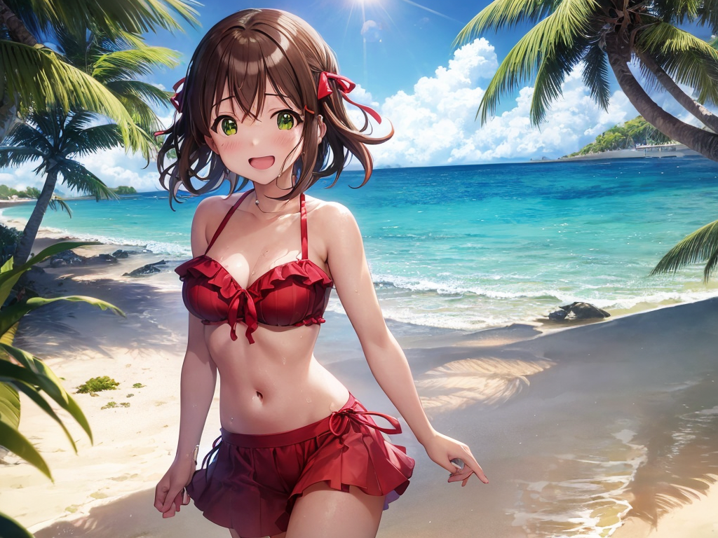 Prompt - (amami haruka),(idolmaster),red dark brown hair,two hair ribbon,(((green eyes))),(((very short hair))), 17years old, bishoujo,1girl,