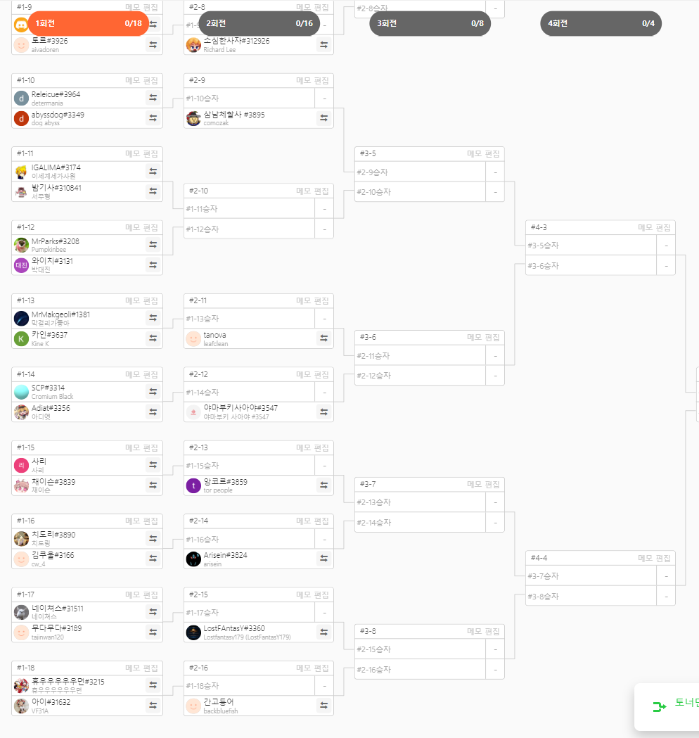 ○ 예선 진행 후 자율로 결과 스크린샷 토나멜에 등록하고 종료