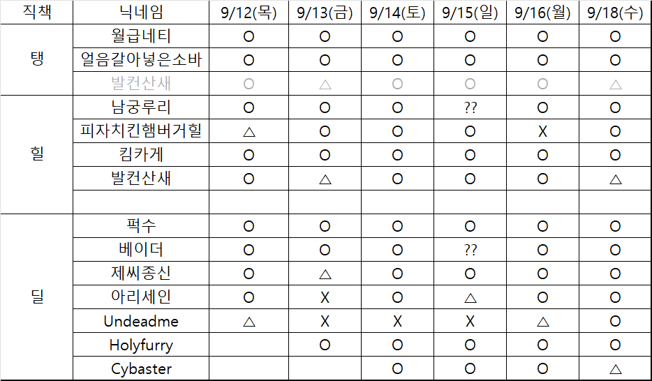 ※ 댓글로 참가 가능한 일정과 직책(탱딜힐)을 적어주세요.