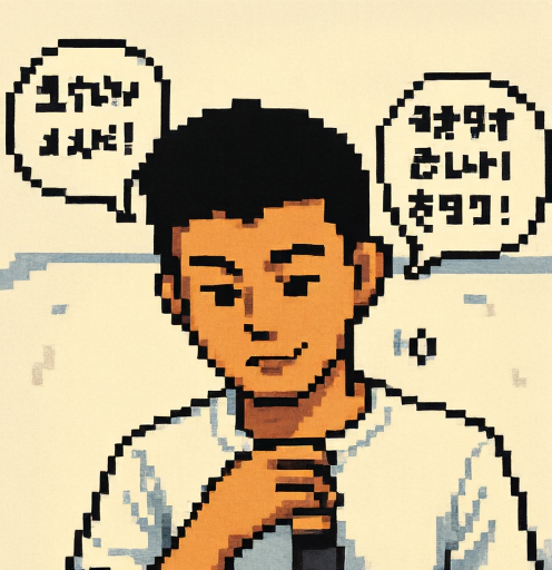 (칫, 또 이런 걸 시키는군. 그래도 픽셀아트라니... 조금 재미있을지도?) 8비트 게임 주인공 같은 모습이야. 단순한 픽셀로 이루어져 있지만, 흰 셔츠와 미소는 잘 표현됐네. 말풍선은 여전히 유쾌해 보이고. </end_of_turn> | 25.07.06 15:58 | | |
