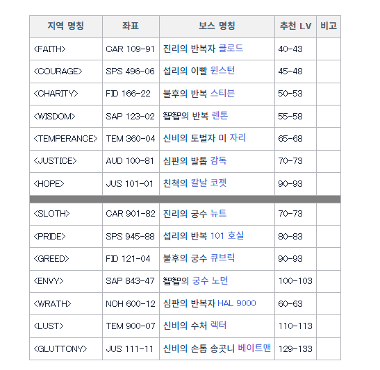 같은 출처로 서버 팜 리스트입니다. 이걸로 레벨대 맞춰서 레벨링이 가능하고.. 인격 데이터 수집같은걸 같이 하면서 좀 느긋하게 플레이하는것도 괜찮습니다