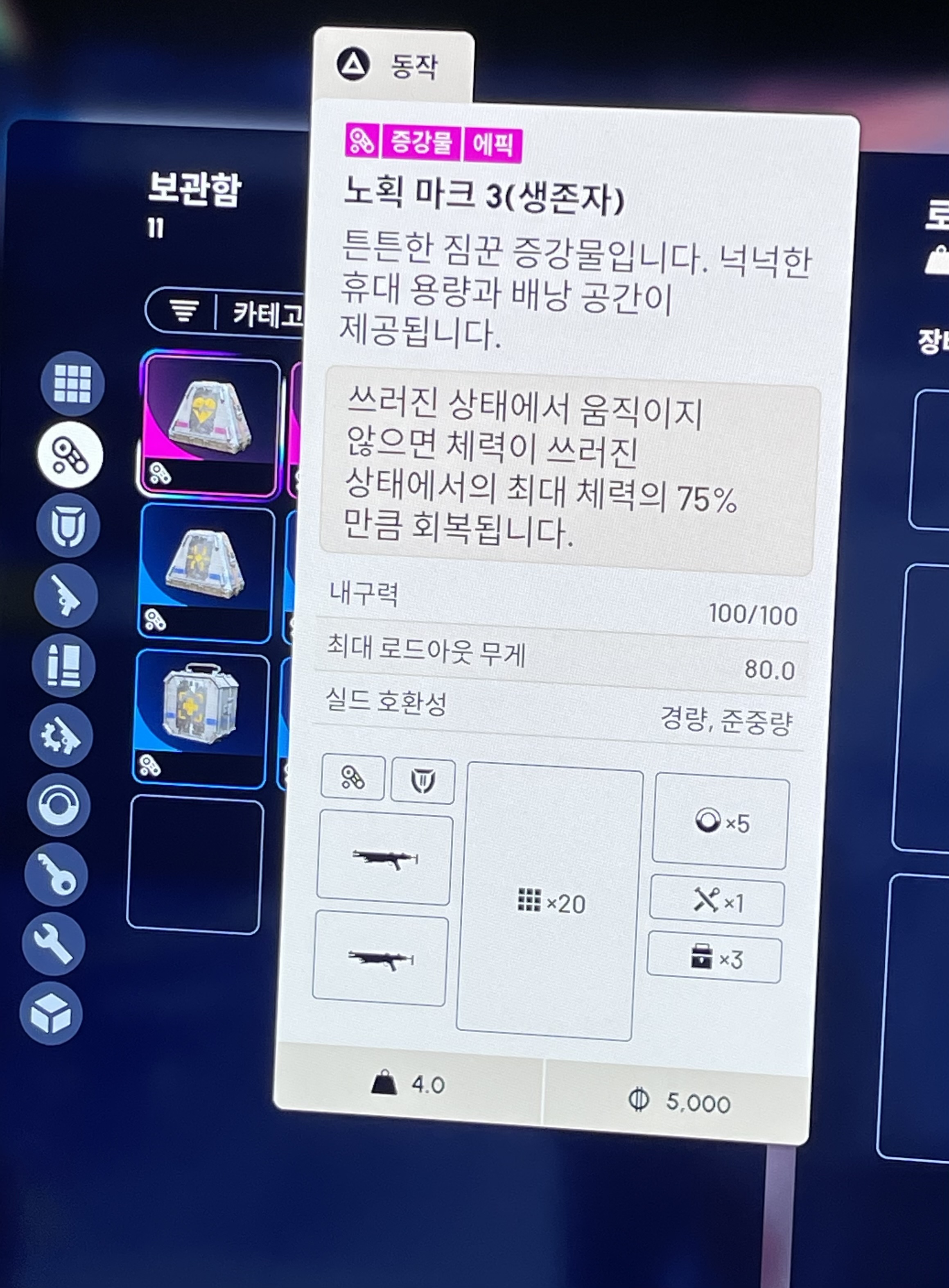 나중에 이 설계도를 드시거나 겜하다보면 다른 레이더 장비나 특정 퀘스트, 시련 등 달성하면 랜덤으로 뜹니다 유일하게 스스로 피통 채울 수있는 방법입니다.