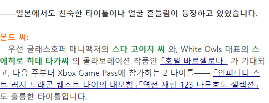다이의 대모험 전혀 모르는 영어권 게이머들이 게임스컴에서 데모해보고 주인공 이름은 죽어라(다이)고, 동료 이름이 아빠(팝), 엄마(맘)이라고 드립치더군요. | 23.09.22 01:20 | | |