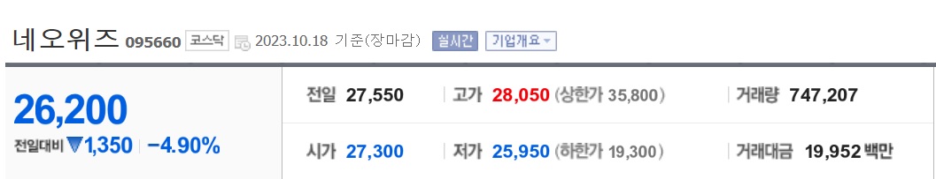 아니 근데 왜 떨어지는겨 5%나 ㄷㄷ 반면 엔씨는 4% 상승 씨부랄