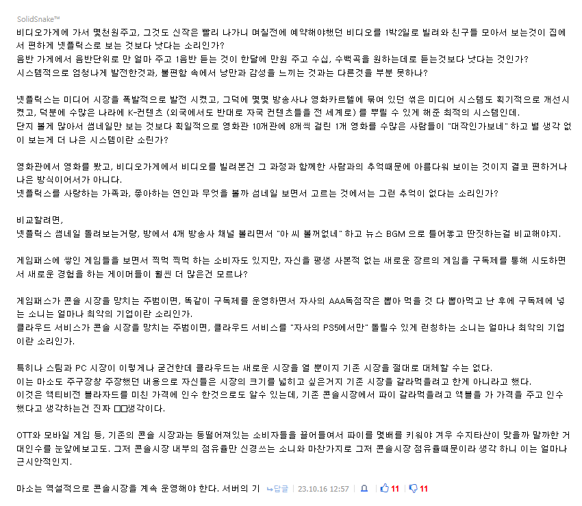 마소는 소니를 죽이고, 닌텐도를 잡아먹고 싶어했습니다. 시장 독점권을 가지려고요. 이미 여기서 필스펜서의 속내 다 까발려졌는데 그걸 가린다고 가려지나요 | 23.10.24 20:08 | | |