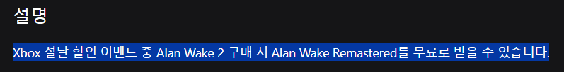 https://www.xbox.com/ko-kr/games/store/alan-wake-remastered/9NKB1B50PZLZ