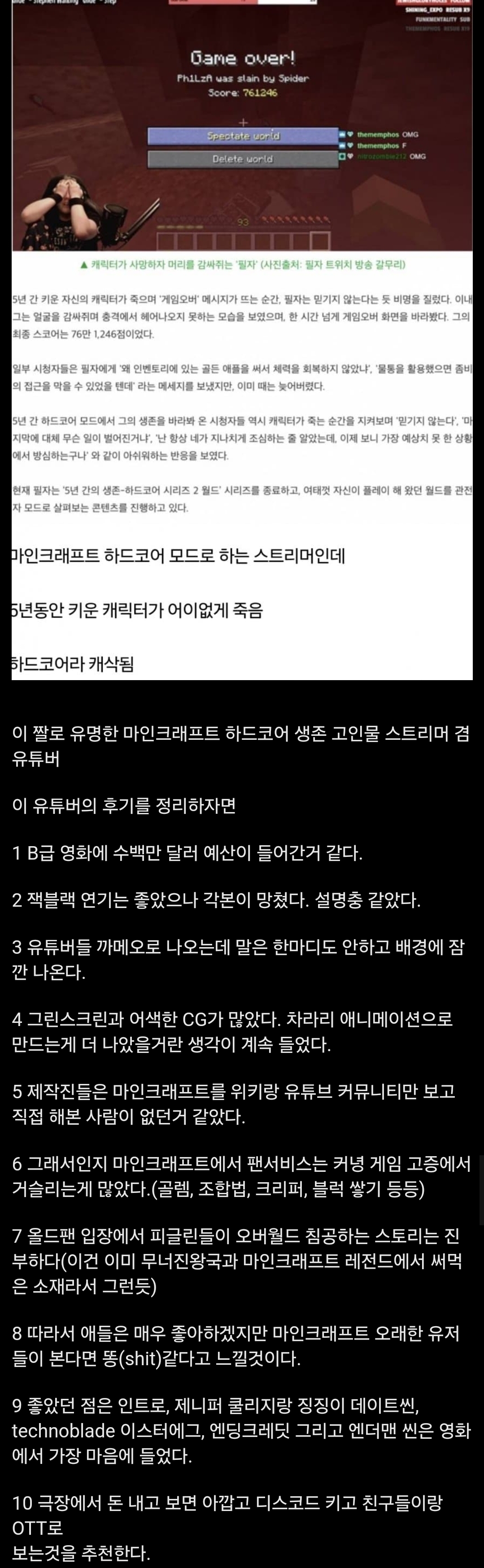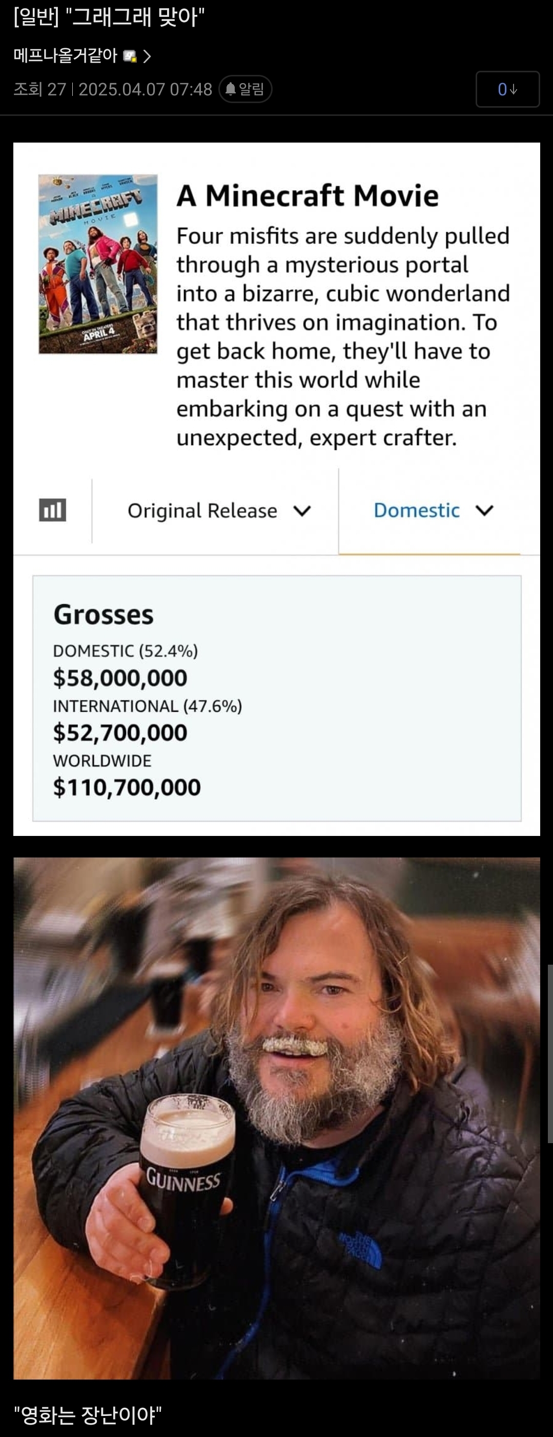 지금 마크 극장판은 사회적 현상임 농담이 아니라 진짜로 근데 솔직히 여기서 관심없다고 신기록써도 마리오랑 분위기 전혀 다른게 웃기네