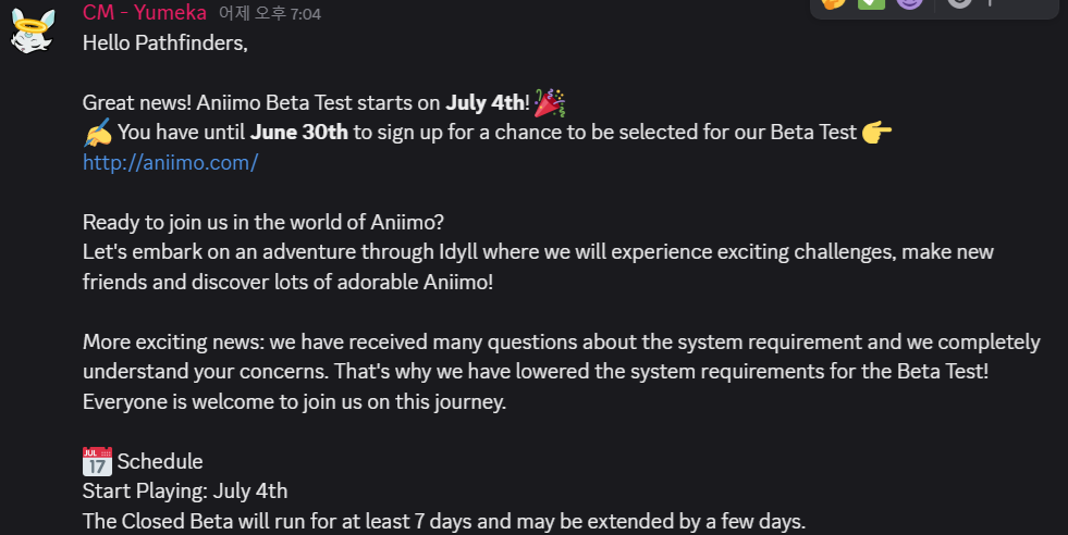 좋은 소식입니다! 7월 4일부터 애니모 베타 테스트가 시작됩니다!