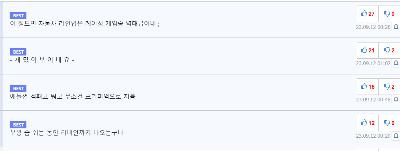 리뷰어 까는 댓글에 깨알같이 비추가 하나도 없다는 것도 소름이고 기자 자질 언급 하는 것도 소름인데 현실은 시궁창이라고 게임을 정확하게 보는 분 리뷰기자로서의 자질이 차고 넘치는 분 가속과 감속만 하는 레이싱게임인데 그란은 재미있고 포르자는 지루하다! 10000%정확하게 리뷰한 리뷰어!! | 25.10.27 10:11 | | |