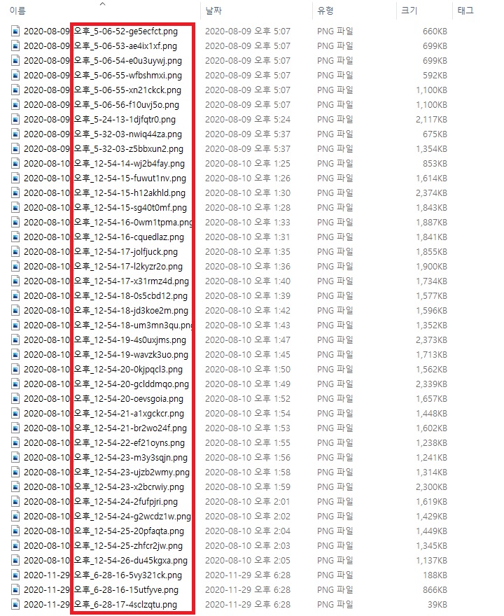 빨간 박스 내용만 보시면 파일명에 게임명이 없는건 둘째치고 뒤쪽으로 정리가 개판입니다