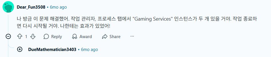작업관리자 목록에 Gaming Services를 강제종료 시키고 엑박앱을 다시 시작하니 해결되었네요.