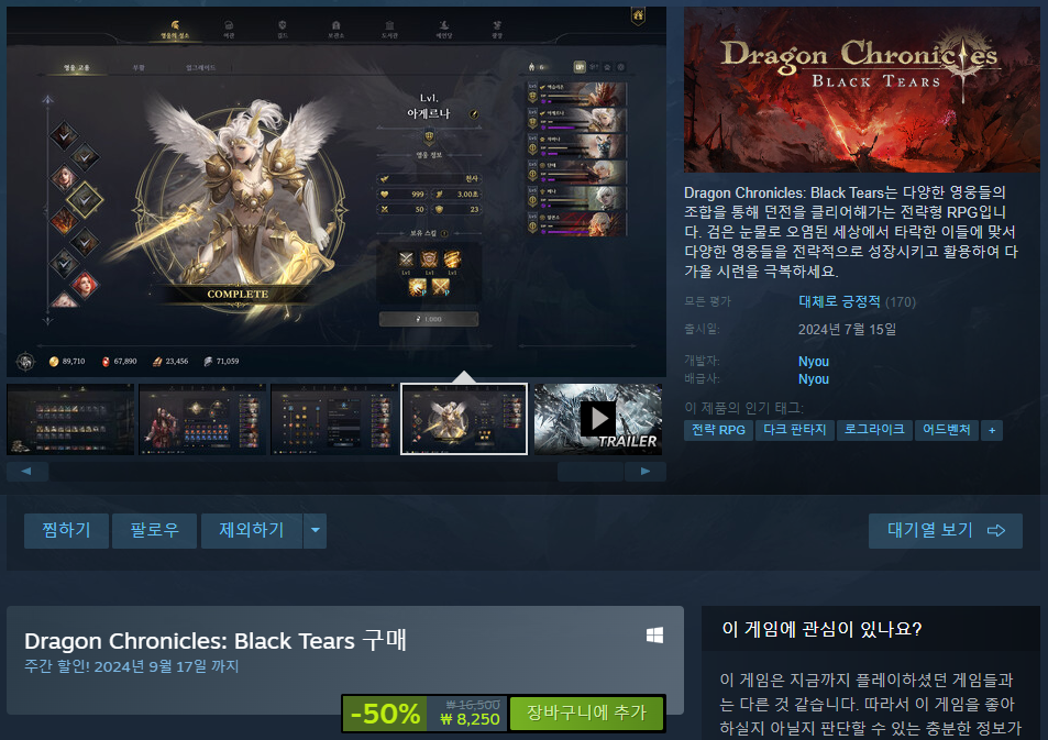 [PC] [스팀] 드래곤 크로니클 : 블랙 티어스 50% 세일 (8,250원)